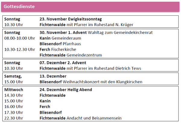 Evangelisches Pfarramt BliesendorfBliesendorfer Dorfstr. 1814542 Werder/Havel